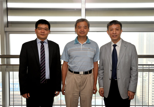 大会主席与主持合影(协和医院曾秋棠 左 同济医院曾和松 中 省人民江洪 右)