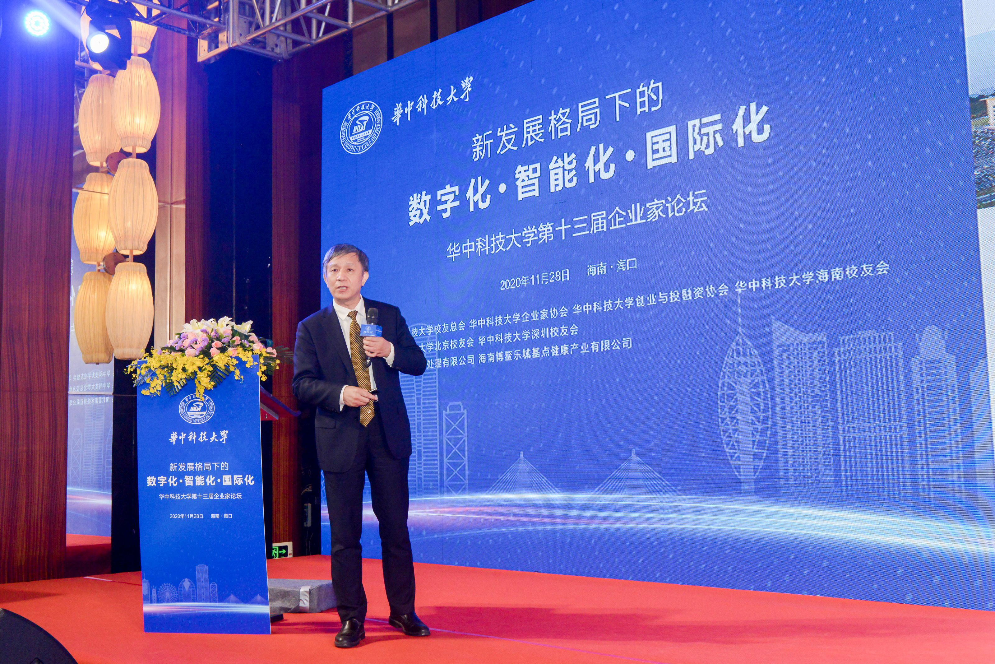 2020年11月27日-28日,华中科技大学第十三届校友企业家论坛在海口召开,来自全国各地的近400位校友汇聚一堂,畅谈新发展格局下的变革与机会。校党委书记邵新宇,校友总会会长、华中科技大学原校长丁烈云院士参加会议。