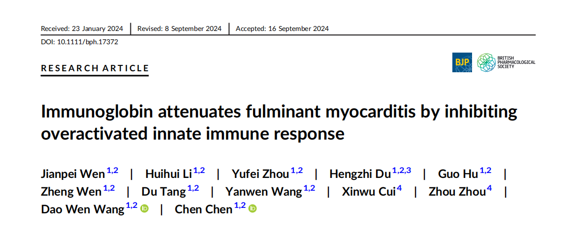 同济医院研究揭示免疫球蛋白改善暴发性心肌炎新机制