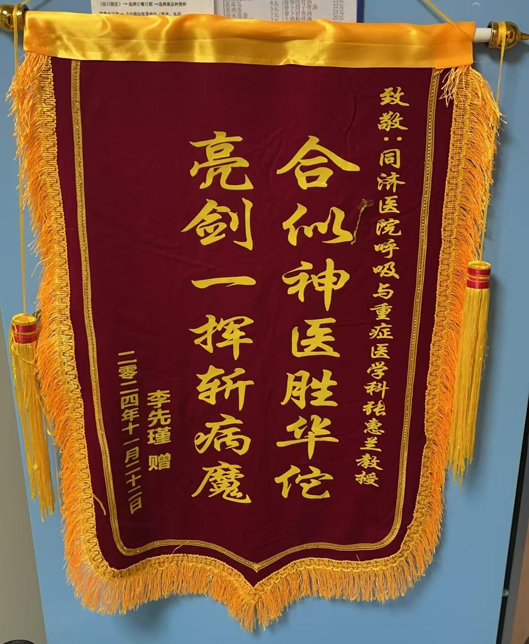 患者给呼吸与重症医学科张惠兰教授团队的锦旗