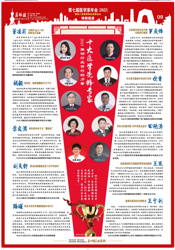 3月18日,由医师报社主办的第七届医学家年会在北京召开,大会公布了“推动行业前行的力量”系列奖项,同济医院董凌莉教授荣获“十大医学先锋专家”称号。