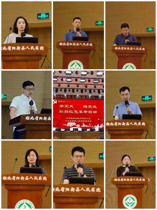 聆听了阳新革命党史教育,同济医院神经外科党总支书记牛洪泉教授,郭东生教授、陈坚教授、杨正明教授、于加省教授纷纷发言,表示对阳新革命历史的学习感受很深:阳新作为湘鄂赣边区红色革命根据地,培养了无数英雄儿女,在全省红色革命老区中有举足轻重的地位;此次党建活动选在阳新、接受我党红色历史教育,并融入学术讲座,以党的政策和方针指引学术交流,同时还增进了同济医院与阳新县人民医院的友谊,共同庆祝建党百年。同济医院神经外科将不断与当地医院开展合作,真正做到传帮带,为革命老区阳新县老百姓就医带来更多好处。