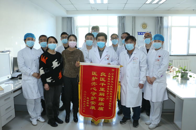 “程院长、王主任,真是太感谢你们啦!”3月4日一大早,一位患者家属怀着激动的心情,将一面写着“良医千里解除病痛,医护齐心守护安康”的锦旗送到了宁夏回族自治区第五人民医院副院长程浩和他的团队手中。