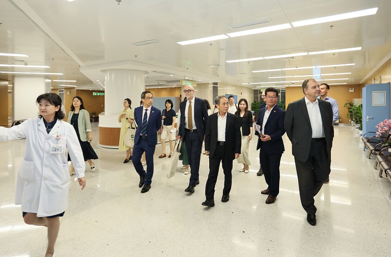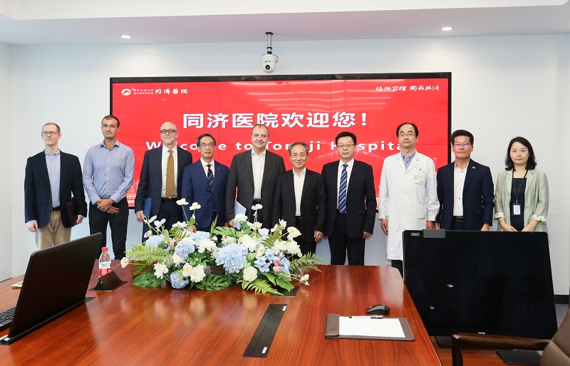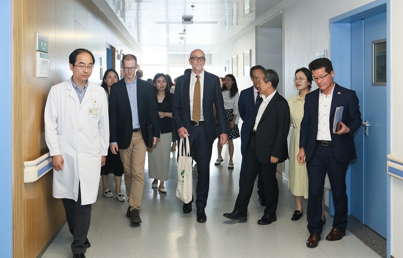 On June 16th 2023, accompanied by Mr. ZHU Xiaobin, deputy director of Foreign Affairs Office of Hubei Provincial People's Government, the delegation of Consulates General in Wuhan visited Tongji Hospital. The delegation consisted of Mr. Jean-Yves ROUX, Consul General of Consulate General of the Republic of France in Wuhan, Mr. HA SUNGJU, Consul General of the Consulate General of the Republic of Korea in Wuhan, Consul Martin Schwartz, the Administration Officer of the Consulate General of the United States of America in Wuhan and Consul Arvind Norris, the Commercial Consul of the Consulate General of the U.K. in Wuhan. Prof. TANG Jinhui, vice-President of Tongji Hospital, Ms. WANG Man, director of the International Exchanges Office, Prof. MI Tao, deputy director of the Integrated Medical Department, Ms. WANG Manting, deputy director of the International Medical Services Department attended the reception.