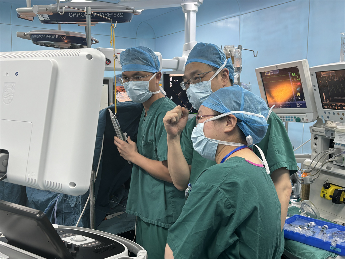 Prof. Wei Xiang, Director of Cardiac Surgery of TJH, invited Prof. Wang to observe transapical beating-heart septal myectomy in the operating room. Afterwards, in the conference room of Cardiac Surgery, Prof. Wang shared the experience of JHM in cardiothoracic surgery. She together with Juan B. Grau from the Valley Hospital, who was learning at Prof. Wei's department, had an in-depth discussion on the surgical treatment of hypertrophic cardiomyopathy with Prof. Wei and his team.