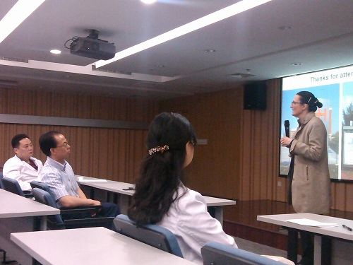 Am 07. Mai hielt Frau Prof. Wagner im Administrationsgebäude eine Vorlesung vor den Lehrenden und den Studenten über seltene entzündliche Systemerkrankungen mit Nierenbeteiligung. Direktor Xu Gang sowie Professor Bu Bitao aus dem Institut für Nephrologie sprachen einleitende Worte und hießen Prof. Wagner nochmals herzlich willkommen. Einige Kollegen aus der Administration sowie chinesische und ausländische Studenten konnten an der Vorlesung teilnehmen.