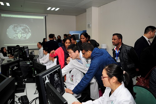 Nach dem Treffen besuchte die Delegation die Chirurgie-Gebäude sowie die Abteilung für Radiologie. Sie tauschten Erfahrungen mit den Ärzten aus und lobten die Ausstattung mit neuester Medizintechnik im Tongji Klinikum.